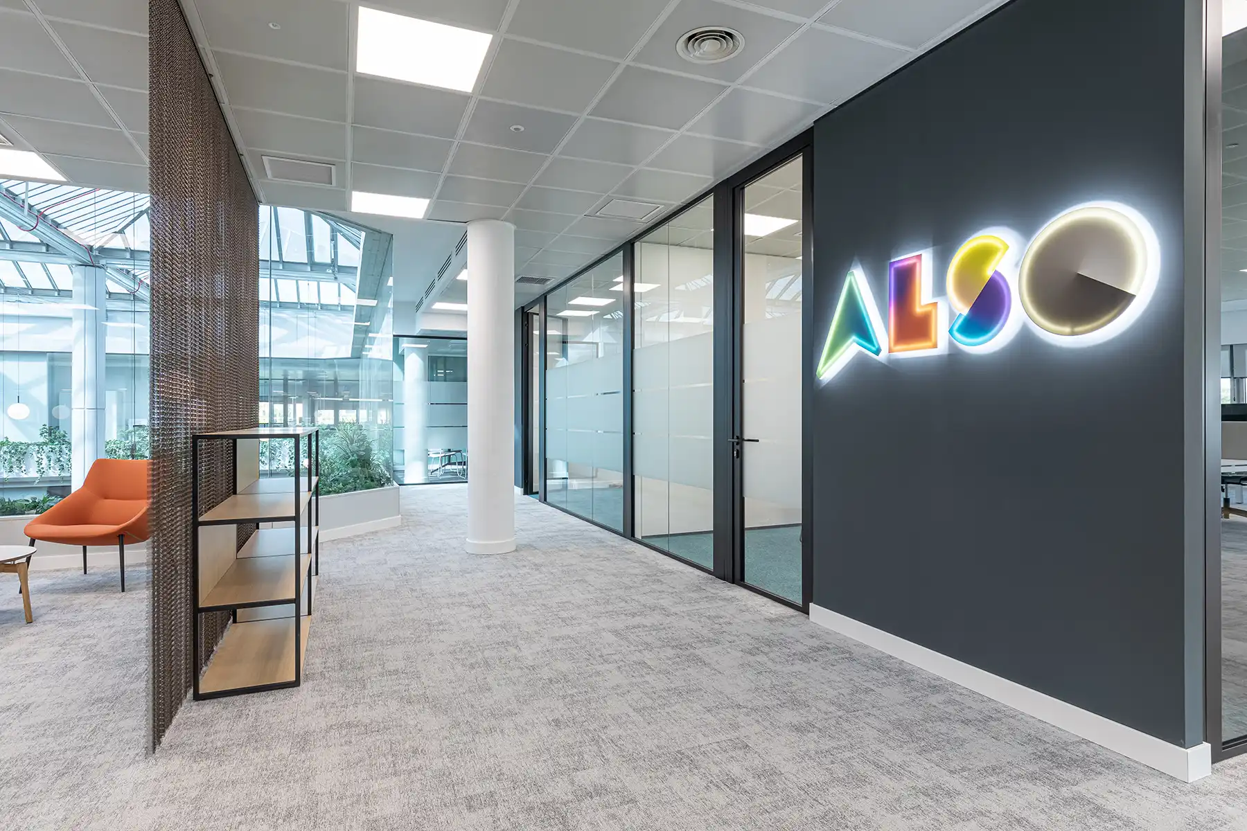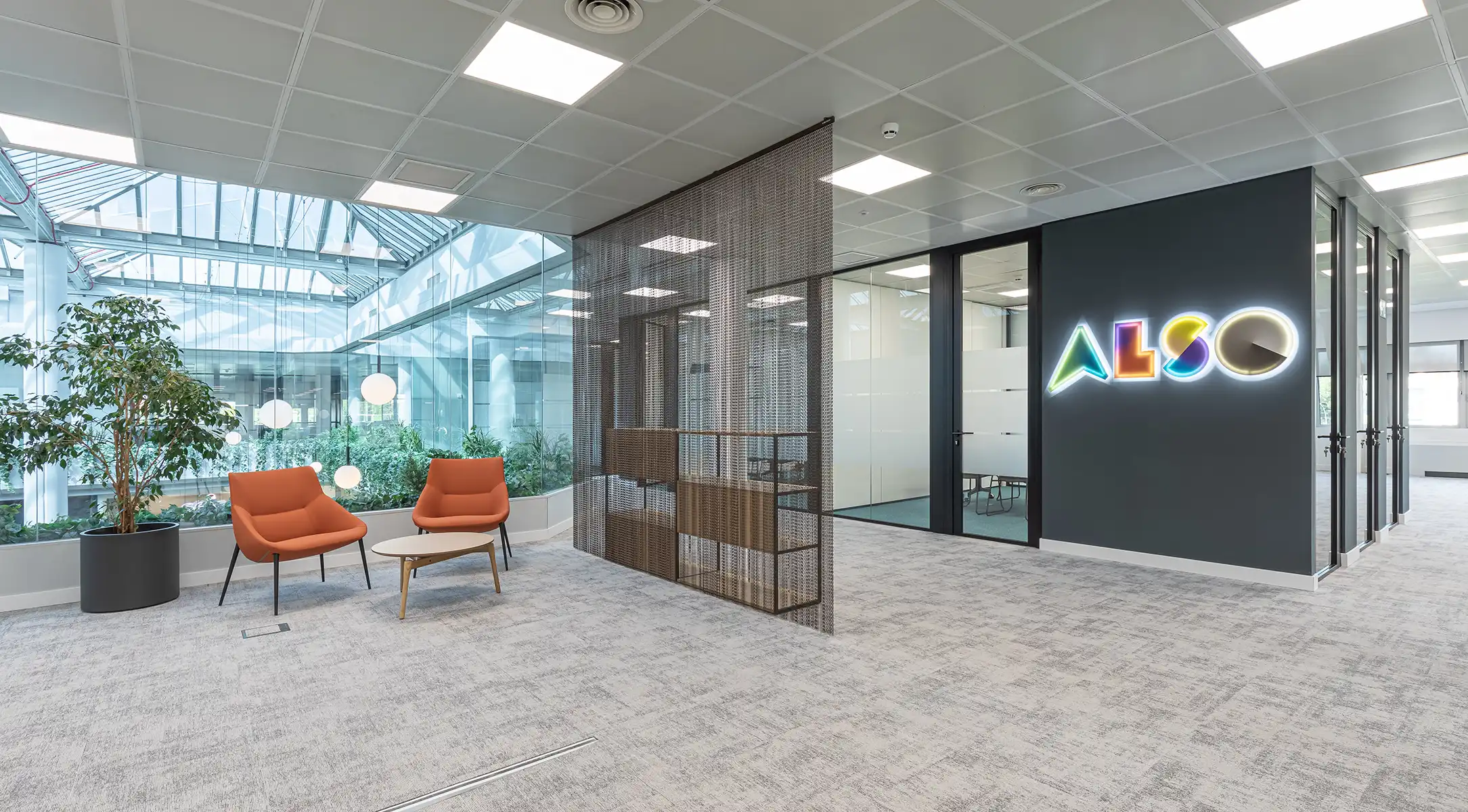 En este proyecto realizamos la producción e instalación de distintos elementos de imagen corporativa para las oficinas de ALSO en Madrid, combinando rotulación de marca con intervenciones gráficas en espacios interiores de trabajo.