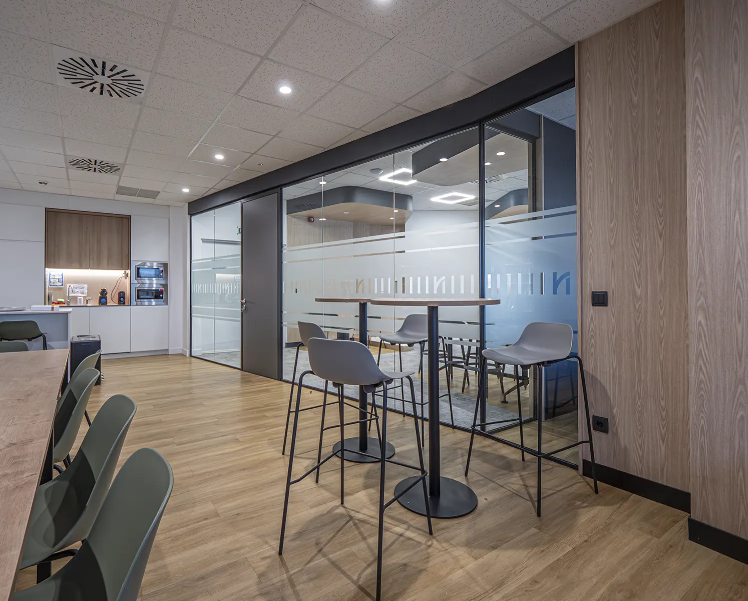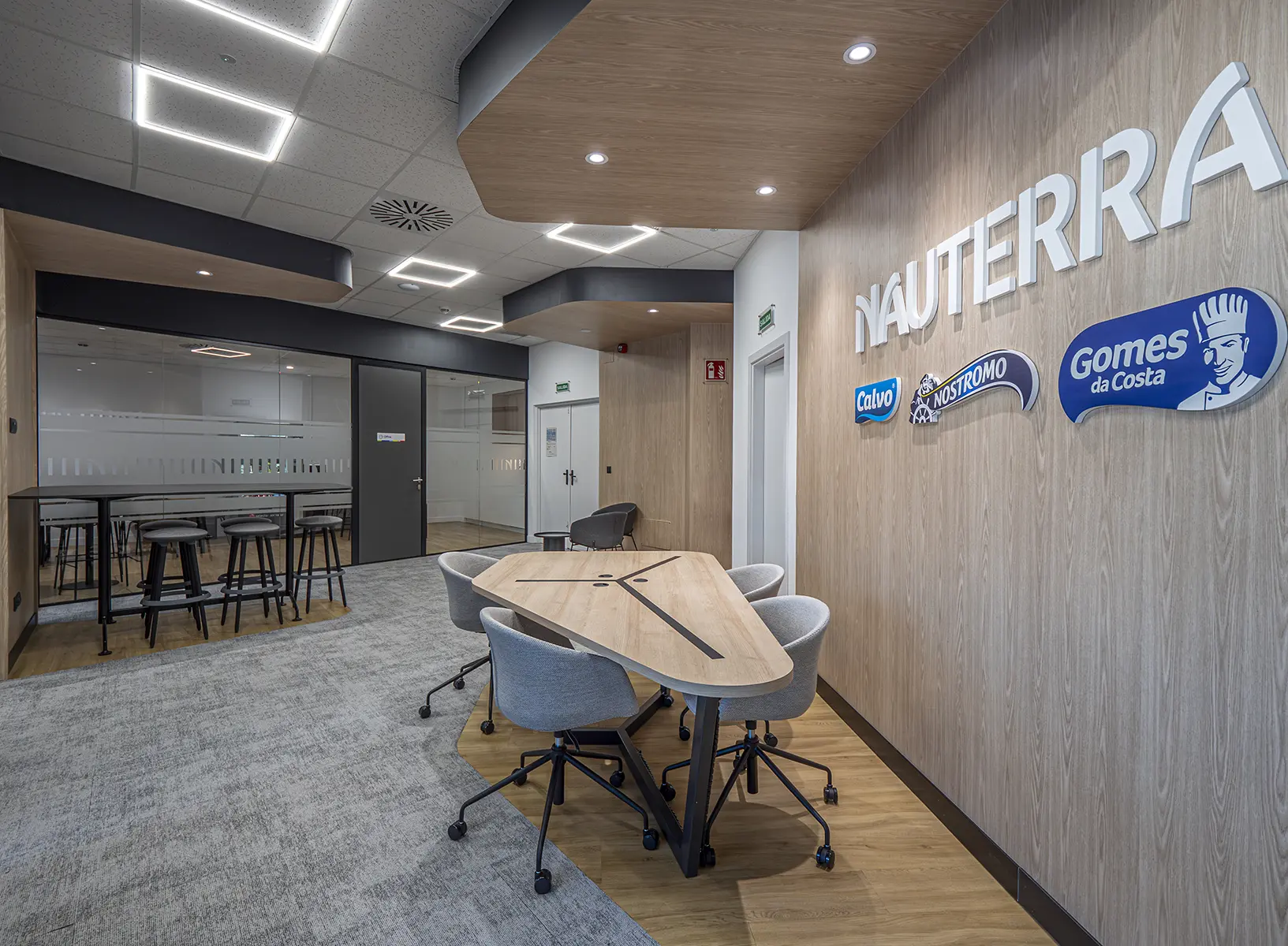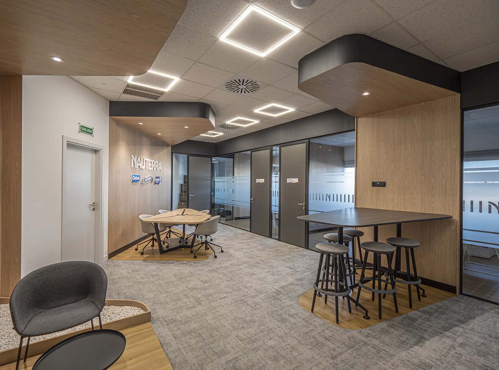 El resultado es un espacio de trabajo moderno, funcional y alineado con la identidad corporativa de Nauterra, donde la rotulación contribuye tanto a la experiencia del usuario como a la coherencia visual del conjunto.